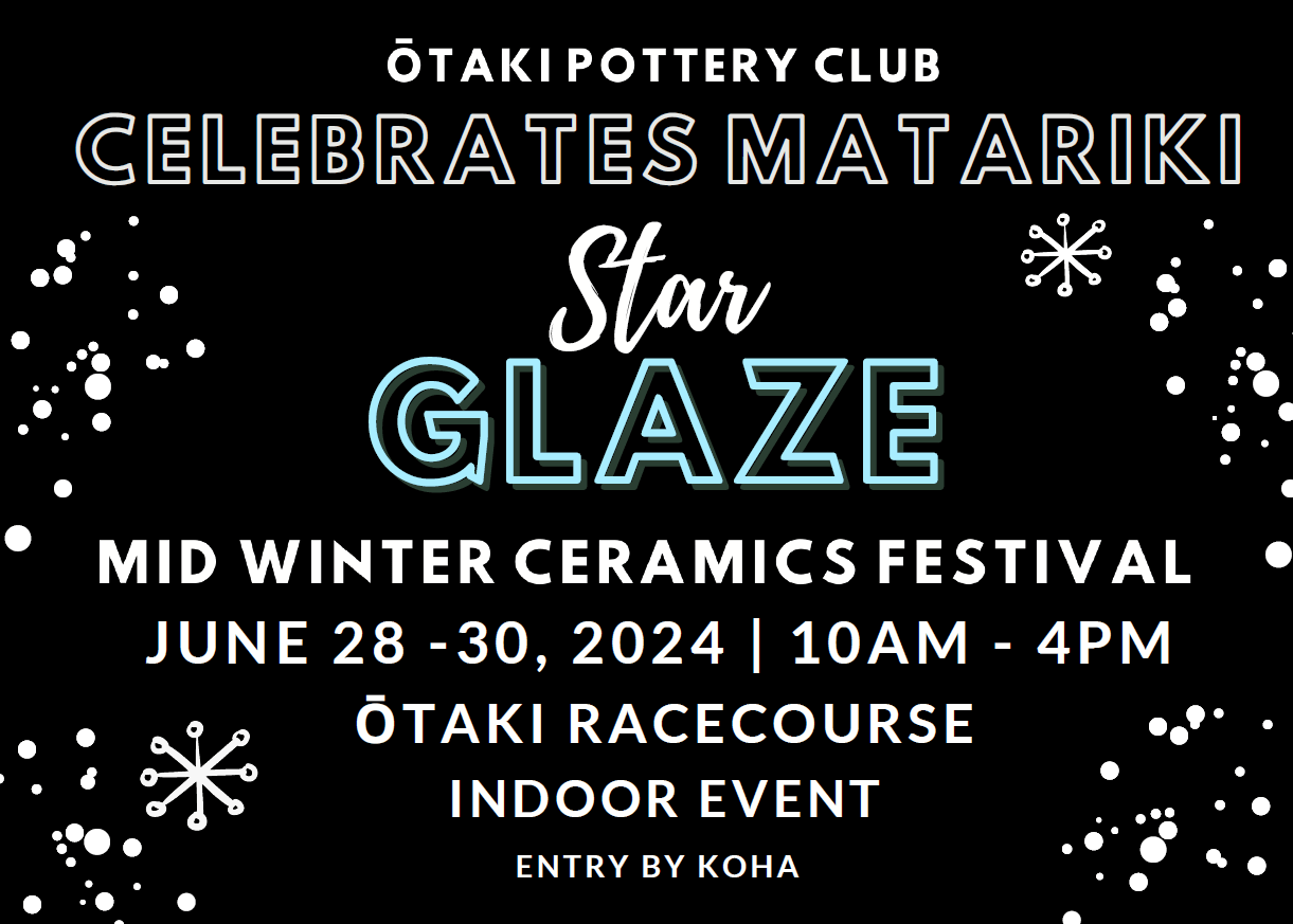 I will be participating in this year’s Star Glaze mid-winter ceramics festival, organised by the Ōtaki Pottery club. This event celebrates Matariki and is an indoor market event involving about 70 potters.